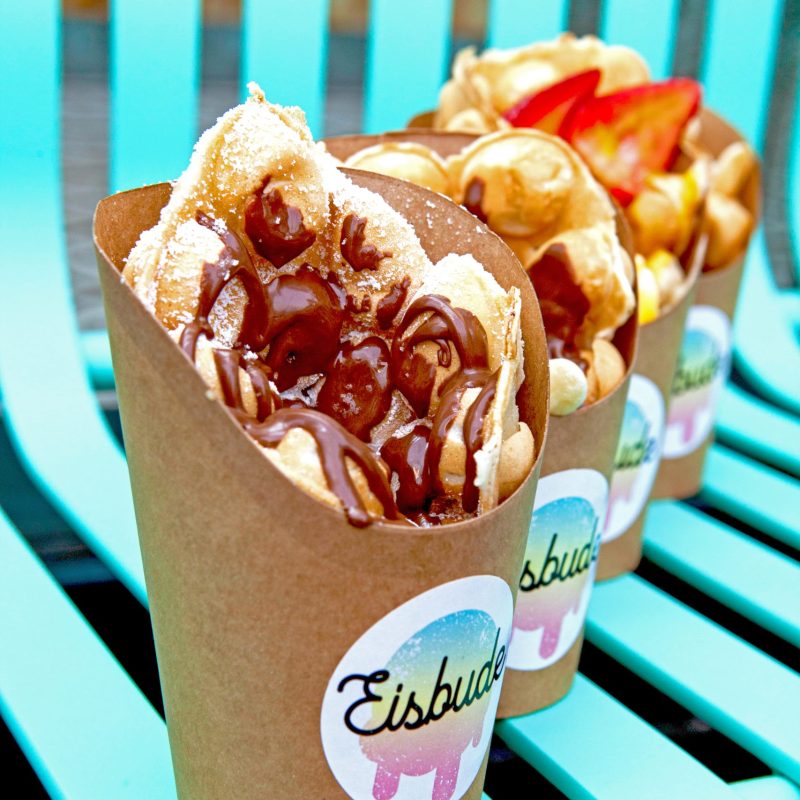 Für die ganz Süssen unter Euch gibt es eine Auswahl an Bubble Waffles. Der perfekte Snack um ihn an einem der Stege an der Alten Donau zu genießen.